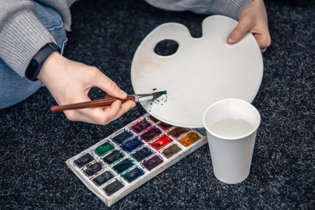 Hartes Wasser kann Trübung verursachen; destilliertes Wasser sorgt für klarere Verläufe. Keramikpaletten kühlen Mischungen, Plastik perlt stärker. Wisch alte Rückstände, damit Pigmentreste neue Mischungen nicht verfälschen.